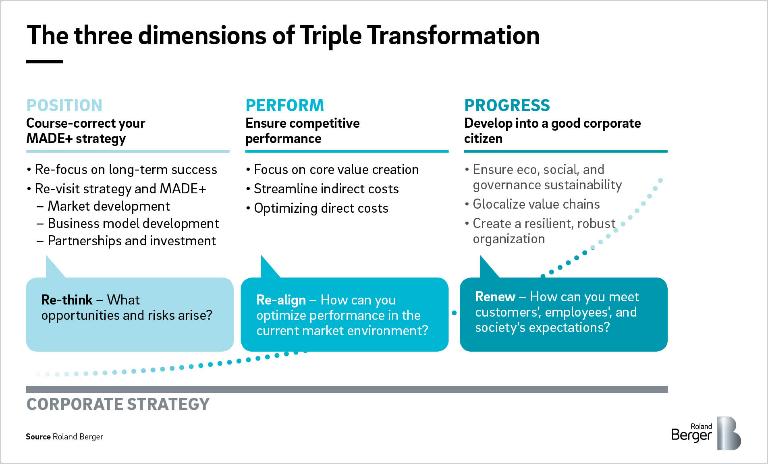 Now is the time for decisive action. Roland Berger offers a toolbox of products to successfully deliver Triple Transformation. Whether it be a comprehensive evaluation of corporate strategy in the ‘new normal’, identifying cost reductions or improving sustainability, we can tailor make solutions to exceed your requirements. We will publish more details shortly, but in the meantime, feel free to get in touch.