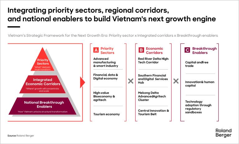 From our analysis, we believe Vietnam’s path to double-digit growth lies in a comprehensive transformation framework. This means prioritizing three core sectors — advanced manufacturing, the digital and data economy, and the bioeconomy/agritech — while developing integrated economic corridors that concentrate resources and expertise.