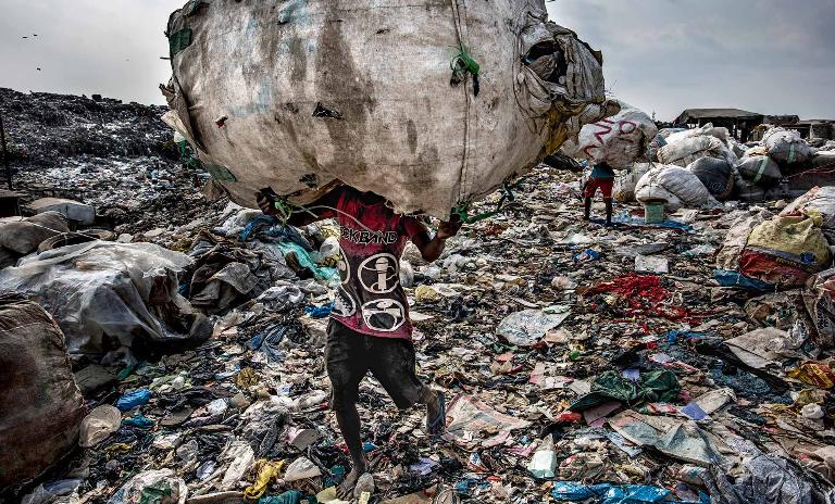 Scavenging for plastic: Located in Lagos, Nigeria, the Olusosun landfill is Africa' largest. Approximately 1,000 scavengers live on-site, sorting through the waste for scrap materials that can be sold on.