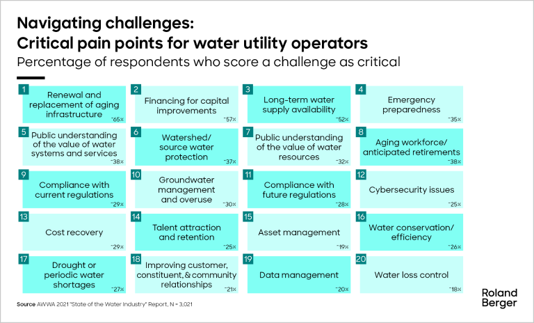 Furthermore, water utilities are historically known to be quite reactive and may lack a well-defined process to proactively implement changes – even if they would lead to improvements. For instance, a survey by the American Water Works Association (AWWA) showed that once a need for an infrastructure improvement had been identified, 60% of water utility leaders would take the next step when they suspect something is about to break or fail.