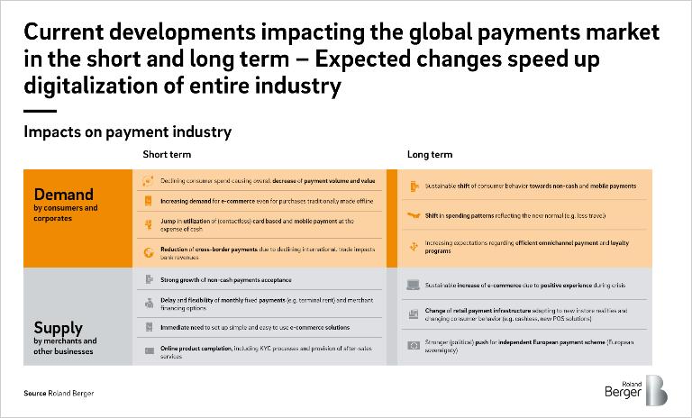 The payments industry has been incredibly dynamic for some years now: dizzying valuations, double-digit growth rates and an ever-quickening pace of technology advancement on a scale barely experienced in any other industry. A temporary volume decline due to Covid-19 should not be misinterpreted: we have seen the coronavirus completely change consumers' shopping behavior, push merchants to the brink of bankruptcy and shine a light on the importance of digital capabilities, all of which has acted as an additional catalyst in an already fast-moving payments industry. We have no doubt that this new reality is here to stay and will only advance still further – with far-reaching implications on business strategy for players along the entire payments value chain.