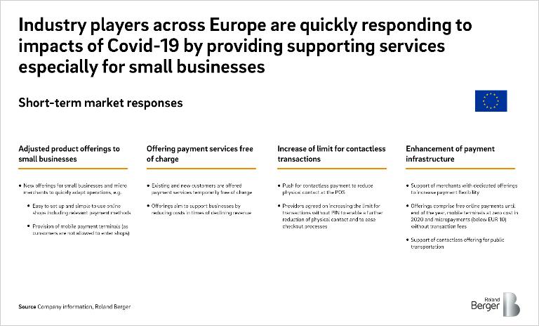 This pragmatic support has repercussions for players along the entire payments value chain. While it was traditionally the role of a merchant's principal bank to offer support with payment solutions, loans and other financial services , this role is increasingly being filled by merchant acquirers or payment service providers (PSPs) during the COVID-19 crisis. Having proven digital channels through which they could reach out and support SMEs was a cornerstone of their ability to provide timely assistance – and one of the key reasons why many principal banks were often found to be lacking in terms of the assistance they could provide. With traditional value chain boundaries becoming less and less distinct for some time now, providers that gave SMEs effective support have the opportunity to become genuine merchant banks for them in the future. And in that sense, it really doesn't matter whether these providers are traditional local banks or international PSPs.
