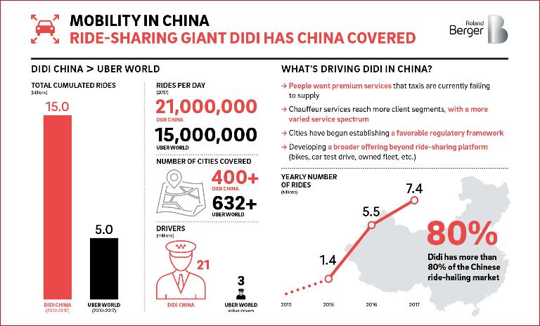With more than 80 percent market share, Didi dominates China's ride-sharing market. While Uber has undoubtedly proven its competitiveness on a global stage, it struggled to keep pace with Didi in China. In August 2016, after a bruising and costly battle for market share, Uber China ceded to rival Didi's $35 billion offer and abandoned the Chinese market.