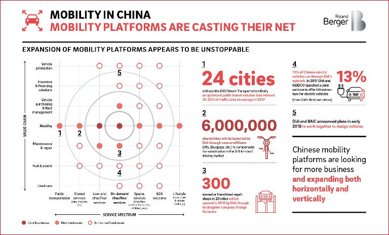 As China's cities continue to face rapid population growth, the demand for transport solutions ever increases. Car-sharing is booming around the country, with annual growth rates of 45 percent predicted until 2025. But Chinese ride-hailing companies are branching out beyond their traditional business and rapidly expanding up the value chain: no longer do they just provide a platform that connects clients with available cars, they now offer maintenance, have installed their charging stations, are selling services such as traffic management and optimization to city councils and are even thinking of building their own cars.