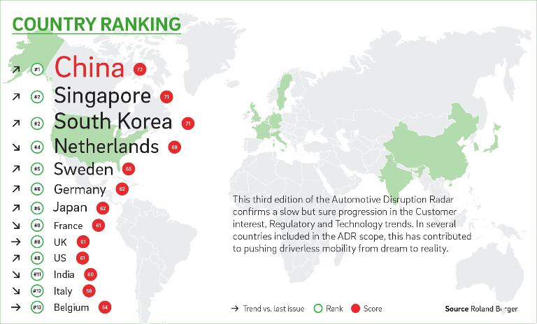 In summary, mobility concepts are changing fast, with the autonomous driving juggernaut moving at full speed. Overall, Asian countries lead the ranking in ADR#3: China again finished top, closely followed by South Korea and Singapore, with the Netherlands coming next and then Sweden. However, while Asian countries are leading the way in opening their roads to self-driving vehicles, again scoring highest in ADR#3, it is expected that mature markets will host the first commercial service. The race is on.
