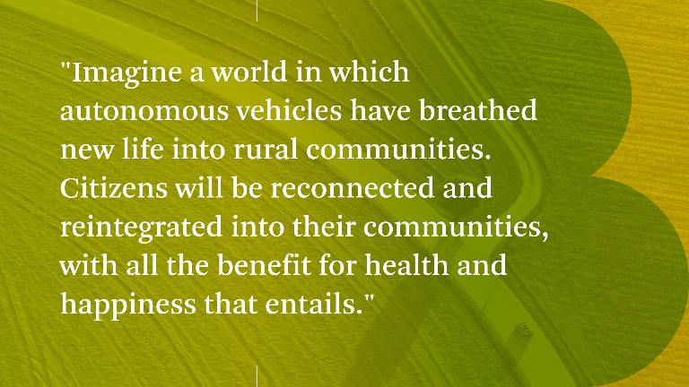 The current debate around autonomous driving tends to focus on its potential impact in cities. We think that the perspective should be broader: Self-driving vehicles could be the key to reconnecting the countryside, part of the mobility solution for people living in rural areas.