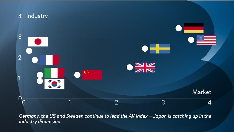 The Index compares the relative competitive positions of the key markets Germany, France, Italy, the UK, Sweden, the US, Japan, China and South Korea.