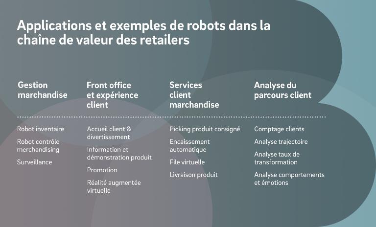 "Robots & Retail" présente cette révolution et repense le modèle des magasins en évaluant l'impact actuel et futur des robots sur l'ensemble de la chaine de valeur du retail, tout au long des parcours marchandises et clients, et jusqu'à l'analyse des données.