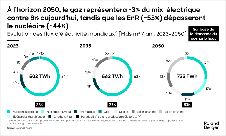 Dans le contexte actuel d’assouplissement des échéances de la transition énergétique couplé à de forts investissements dans les infrastructures de production de gaz (EUR 1,3 Md par an), un scénario de consommation mondiale de gaz qui reste en croissance devient plausible.