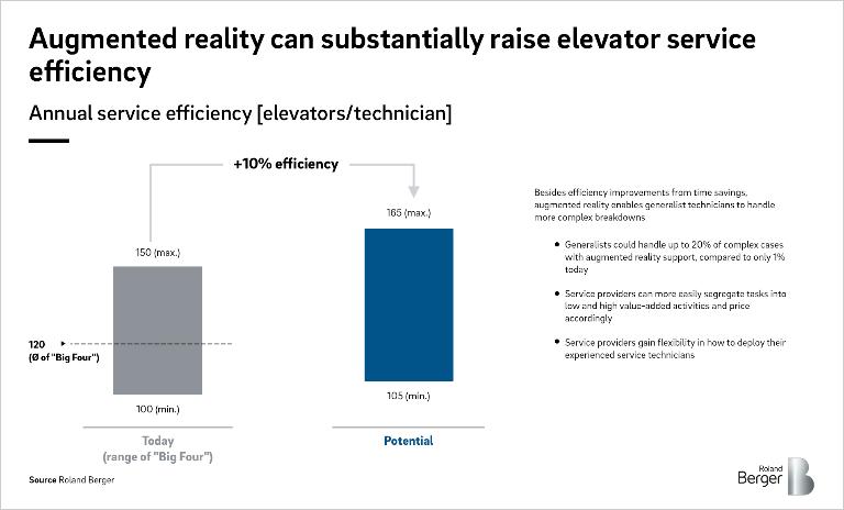 Experienced service technicians are scarce and expensive. Their availability during breakdowns constitutes a costly bottleneck: if not available, lift operators swiftly contract competitors instead. Augmented reality empowers more readily available generalists to service up to 20% of complex breakdowns instead, compared to only 1% today. Such rapid reaction results in customer satisfaction and even allows you to charge a premium.