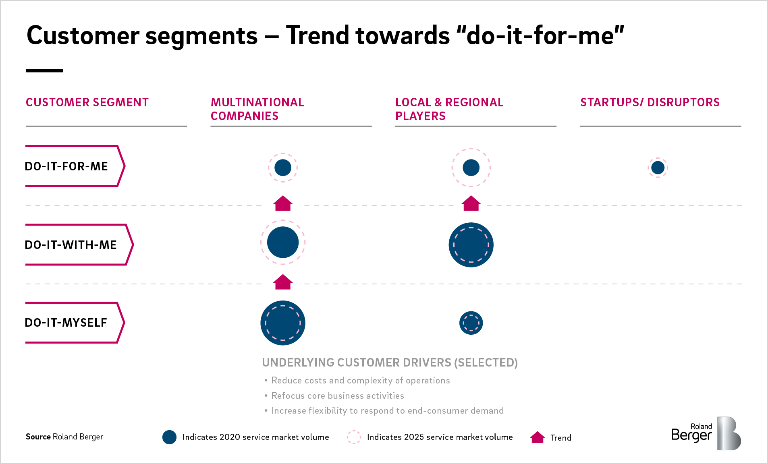 At the moment, the "do-it-with-me" segment is dominating the market. However, an increasing number of large multinational corporations and regional companies are moving into the "do-it-for-me" space, as they shift resources to their core business activities. In an environment of ever-faster changes, this trend is likely to continue.