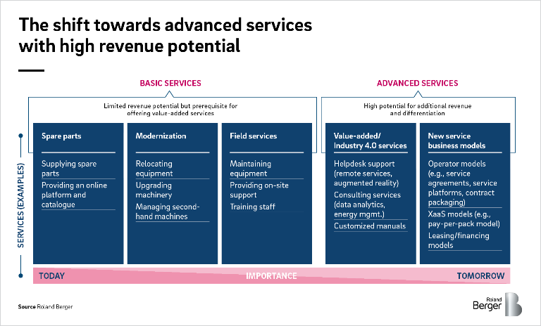 Companies operating in different markets or parts of the value chain are employing different service models in order to maximize their profitability. For example, providers of large equipment, such as PET filling machines, traditionally already use their service business to generate profits, as the sales of the machines themselves are often barely profitable. Here, some providers have built a comprehensive lifecycle service business model ranging from spare parts and embedded engineers to digital services.