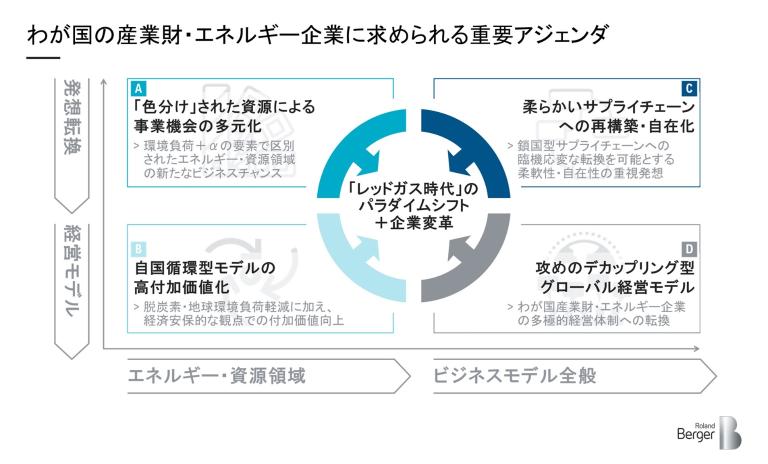 来たる「レッドガス」時代に向けては、抜本的なパラダイムシフトと企業変革が必須となる。そこで、わが国の産業財・エネルギー企業に焦点をあてて、順次、求められる4つの重要アジェンダごとに背景・打ち手等を詳述するとともに、欧州の脱炭素を取り巻く最新の動向も洞察していく。