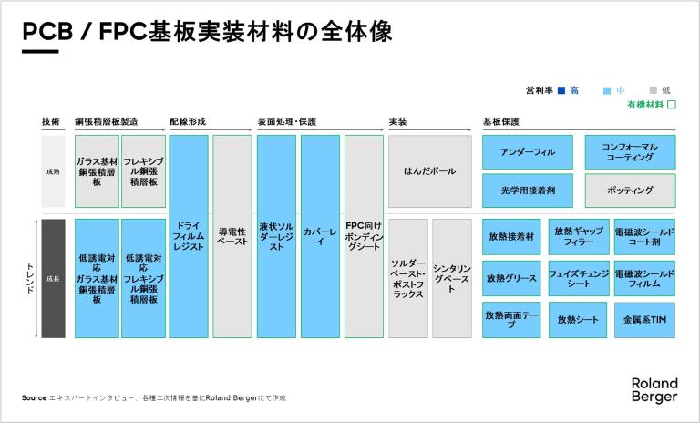 低誘電対応の銅張積層板など、低誘電や高耐熱性、高放熱性といった半導体全体のトレンドに大きく影響される材料が高い成長性・収益性を有している。