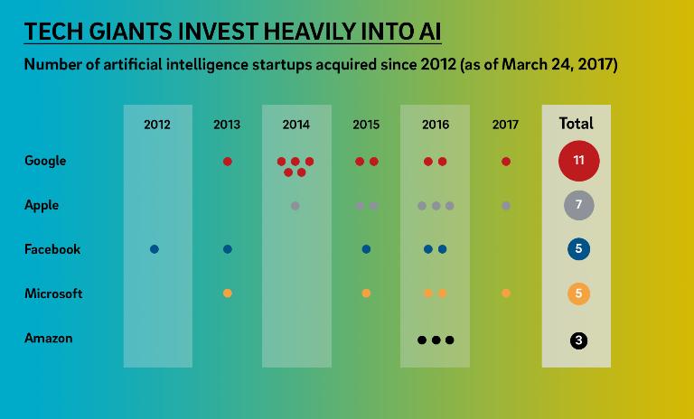 At this year's developer conference Google announced a shift from mobile first to AI first. Not only that, its second generation Tensor Processing Unit chips are outperforming the world's leading commercially available computer chips when it comes to AI tasks. In line with Google, all other leading tech giants leverage AI through their product portfolio and have heavily increased investment in AI.