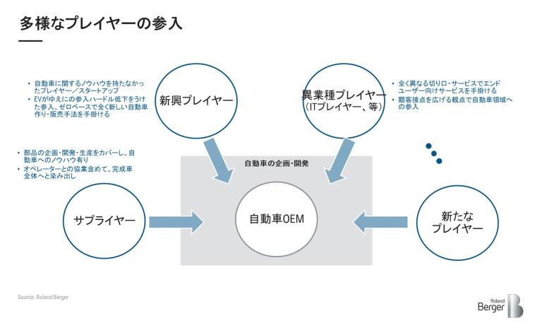 これらの動きは自動車業界に構造変化をもたらし、既存の自動車メーカー・サプライヤーにとって、競い合う相手や協業する相手が変わるということを意味している。