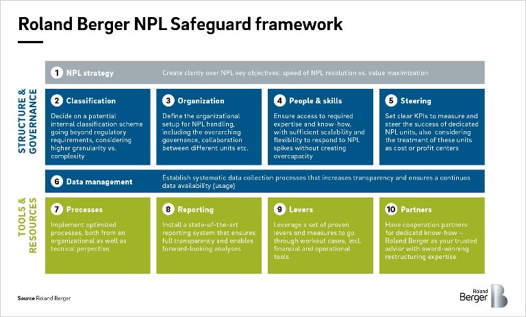Roland Berger can support with the NPL Safeguard framework which is applicable in principle on the individual bank level as well as on the market level.