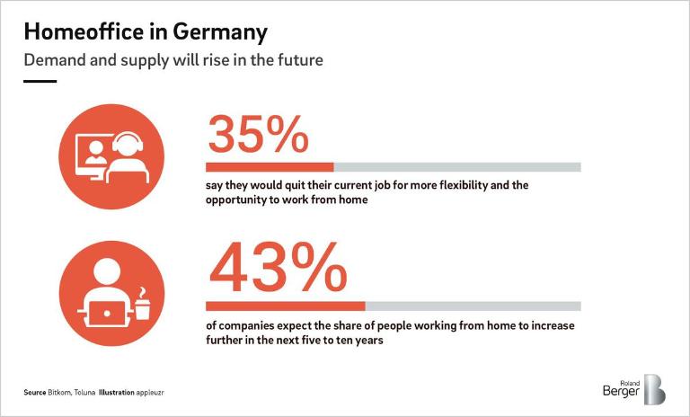 The concept is also popular among employees. 35 percent say they would leave their current job to gain more flexibility and the possibility to work from home.