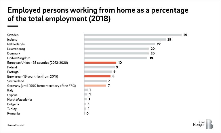If we look just at Europe, Germany -- Europe's biggest economy -- ranks close to the European average and can thus be taken as a typical European example, whereas the Nordic countries are more advanced in enabling employees to work from home.