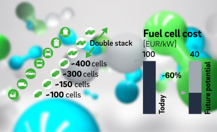 There is almost universal consensus that hydrogen (H2) and fuel cells are indispensable to any transition to a climate-friendly economy – especially where other ways to reduce greenhouse gases fail to measure up. While rechargeable batteries are a very efficient option for passenger cars, for example, they are simply too heavy for long-distance haulage. As a way to decarbonize branches of industry such as steel and chemicals , H2 is also essential for reducing feedstock and process-related CO2 emissions. Moreover, hydrogen and the synthetic energy carriers produced from it (power-to-X) will play an important role as storage media in any electricity system that is rooted in renewable energy sources .