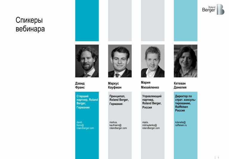 16 ноября 2021 Roland Berger Россия провел вебинар "Глобальный энергопереход: как выжить и преуспеть", на котором ведущие эксперты Roland Berger познакомили слушателей с текущими трендами в области глобального энергоперехода, рассказали о мерах, принимаемых в разных странах, об основных задачах, которые должны быть реализованы в ближайшем будущем и рисках, связанных с глобальной трансформацией и энергопереходом. Вместе с экспертами Raiffeisen банка мы говорили о процессах, идущих в России, о юридических аспектах, и на примерах показывали решения, которые уже предпринимаются компаниями в рамках идущей трансформации.