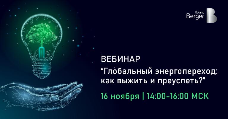 "Глобальный энергопереход: как выжить и преуспеть" - это вебинар, на котором ведущие эксперты Roland Berger познакомят вас: