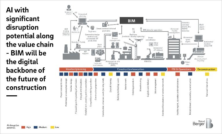 To conclude, we predict that AI will trigger significant changes along the entire construction value chain and the disruption potential is highest in areas that are characterized by repetitive, known tasks with limited uncertainty. The infographic above shows where the disruption potential is highest.