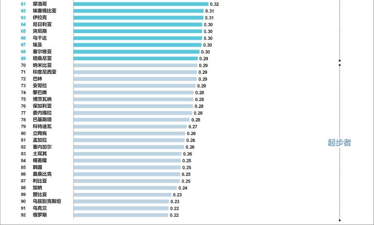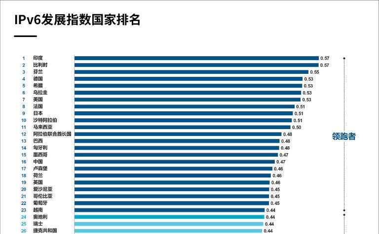 报告选择了全球92个国家计算了各国2022年的IPv6发展指数。基于具体的指数数值,我们将这些国家分为领跑者、加速者和起步者三大类。此外,我们对3个标杆国家和全球15个国家的IPv6发展情况进行了深入分析,并提出针对性建议。
