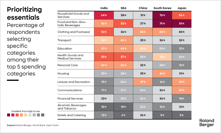 我们发现,各国消费者信心与GDP增长预期紧密相关。大多数亚洲消费者对未来收入增长持乐观态度,其中印度、中国和越南表现尤为明显;而韩国和日本的大多数消费者对未来两年可支配收入的预期则较为悲观。