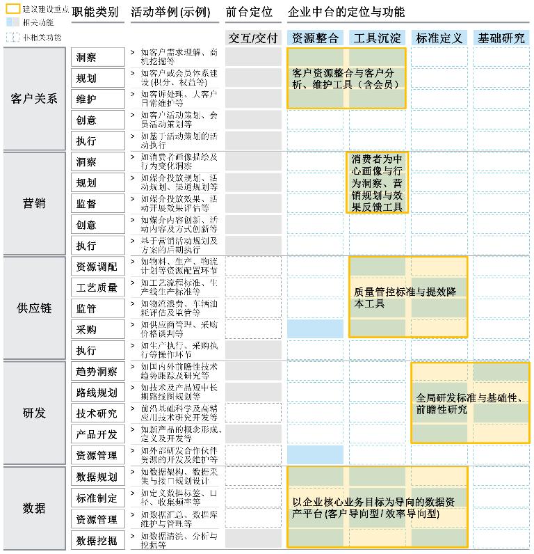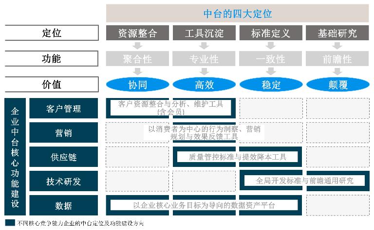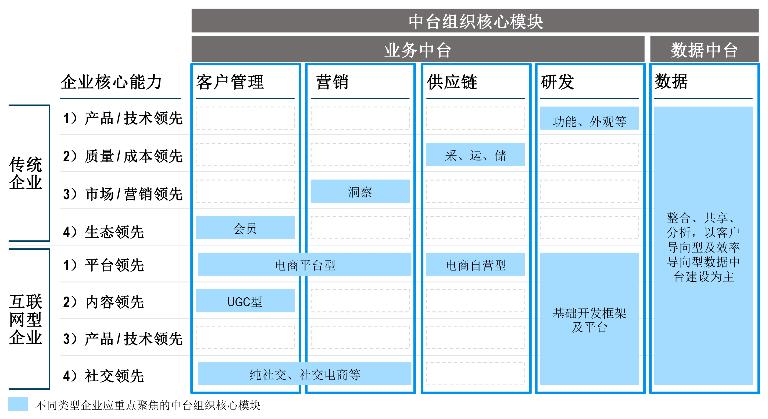 不同核心竞争能力的企业在中台建设中应切准功能建设重点